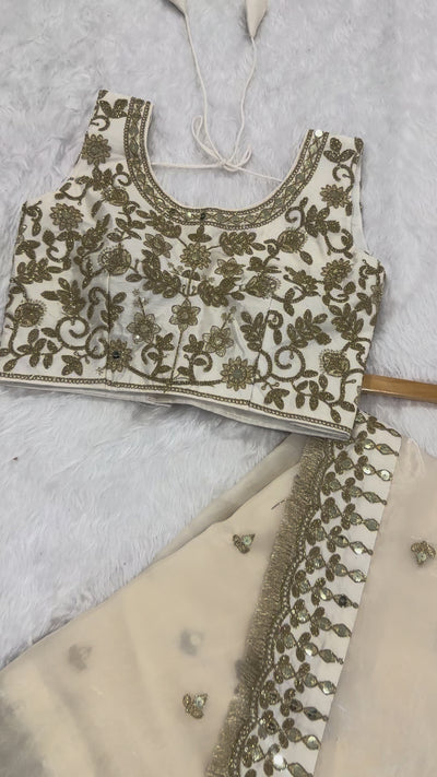 Blouse : Thai silk blouse with Dori , sequins & zari thread work all over front & back ( unstitch )