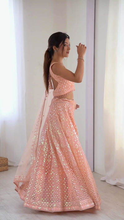 Sparkling Peach Net Lehenga Set